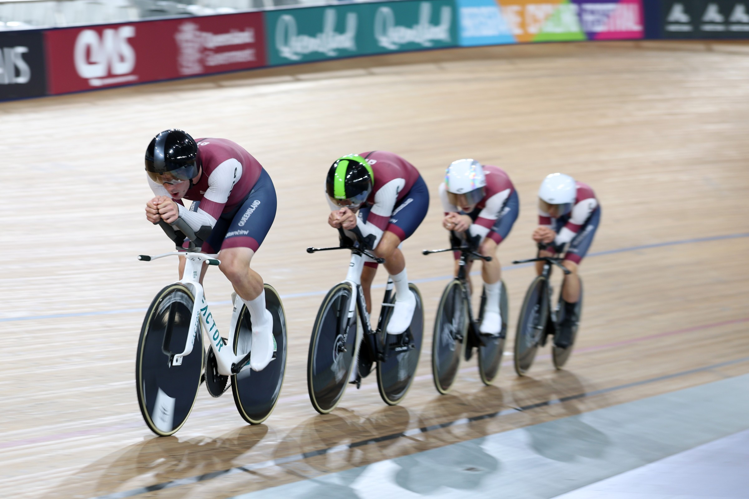 Queensland dominated the men’s elite team pursuit final, cementing their dominance by setting a championship record in the process with victory over Victoria.